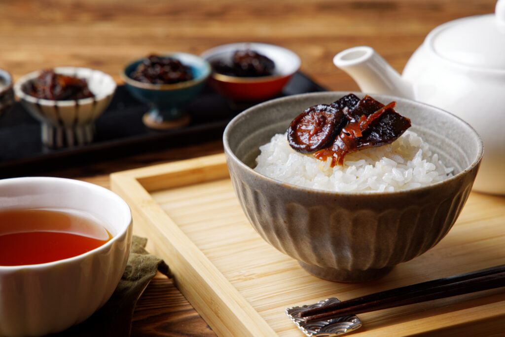 舞昆は、大阪公立大学との共同研究で生まれた、果物やびわの葉などを加えて発酵させたGABA豊富な健康食品です。そして、柔らかな食感と濃厚な旨味で、炊きたてのご飯との相性は抜群に仕上がっています。
