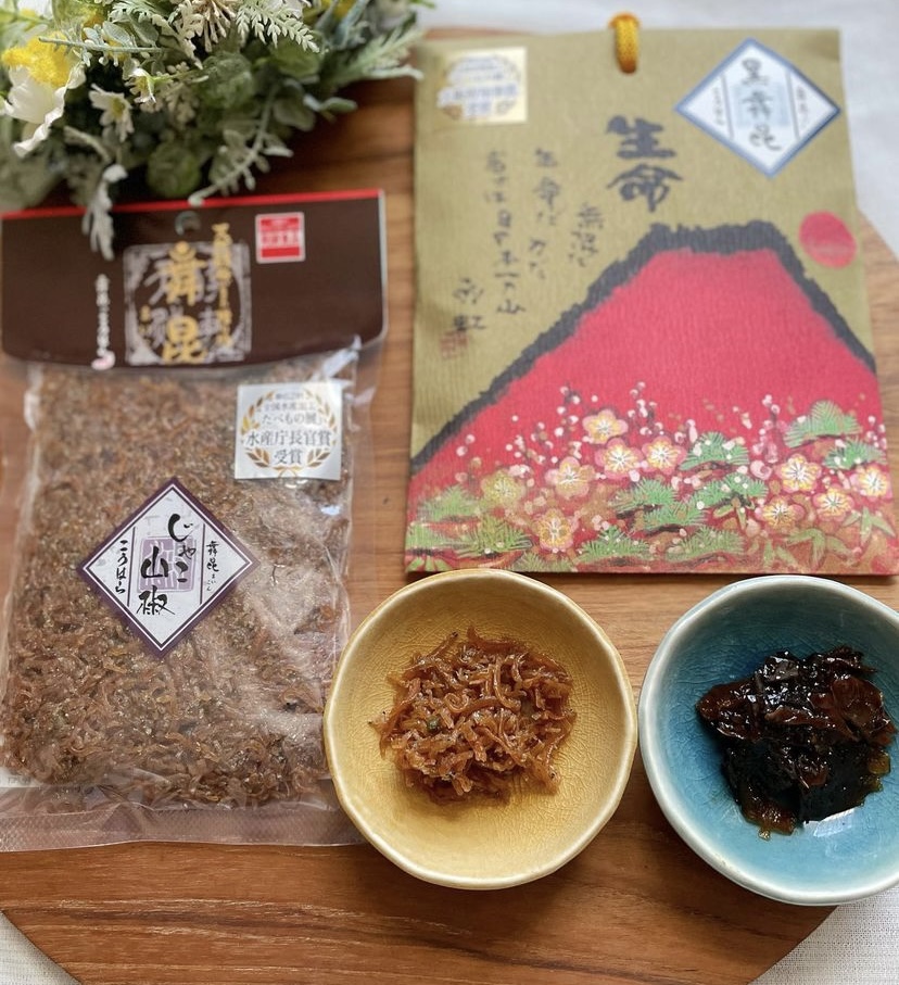 贅沢な「極旨松茸舞昆」や、抗酸化作用が期待されるたもぎ茸を使用した「たもぎ茸舞昆」など、縁起の良い赤富士の袋入りは、気軽なご挨拶やお土産にぴったり、また、お世話になった方へのお歳暮には、上質な木箱入りの詰め合わせもおすすめです。