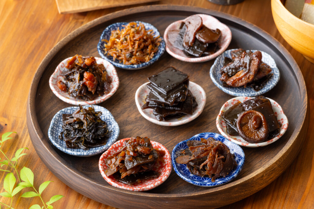 舞昆は、昆布の持つミネラルや食物繊維に加え、大阪公立大学との共同研究によって果物やびわの葉、大麦などの自然素材を発酵原料として融合させた、体にやさしい塩昆布風発酵食品です。当店では、ご家庭の食卓を彩る種類豊富な昆布・佃煮を取り揃えました。
