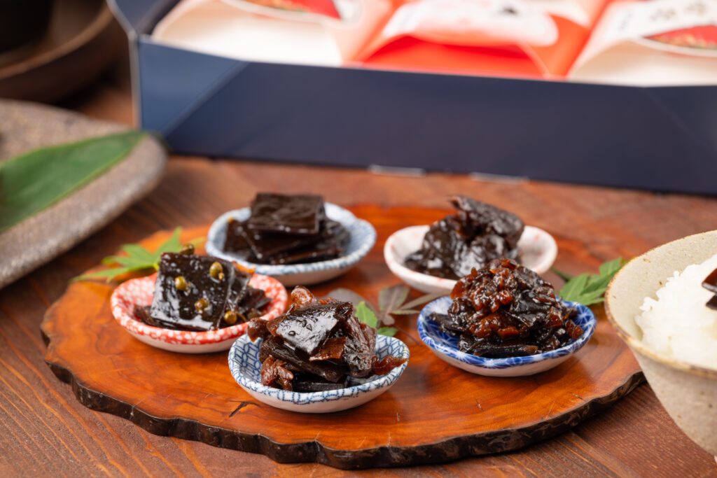 看板商品の舞昆は、「黒舞昆」をはじめ、北海道産のたもぎ茸を使った「たもぎ茸舞昆」や、今だけ増量中の「極旨松茸舞昆」など、お味も豊富に取り揃えております。北海道道南産の肉厚な真昆布を贅沢に使用し、独自の天然酵母でじっくりと発酵熟成させています。このプロセスにより、角のないまろやかな甘みと奥深い濃厚なコクを生み出しています。